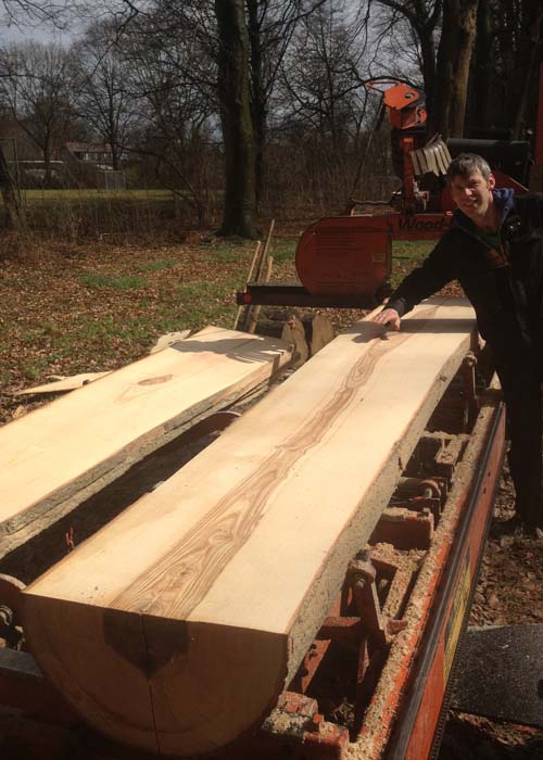 Dit hout koop ik als stam waarna ik het zelf verzaag en laat drogen voor gebruik.